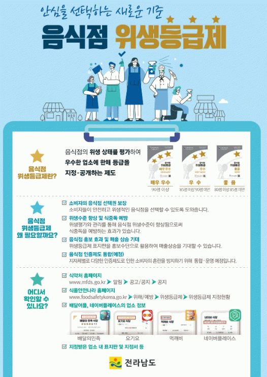 정광선 전남도 보건복지국장은 “이번 음식문화 개선 사업은 단순한 시설 지원을 넘어 음식점 스스로 변화하고 성장하도록 돕는데 의미가 있다”며 “앞으로도 도민과 전남을 찾아오는 누구나 신뢰할 안전하고 품격 있는 음식문화를 만들겠다”고 말했다.