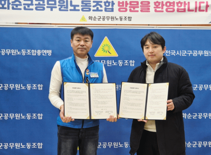 강진호 화순군공무원노동조합 위원장은 “조합원들의 건강한 근무 환경이 곧 군민을 위한 안정적인 행정서비스로 이어진다”라며, “이번 협약을 계기로 조합원 복지 향상은 물론, 지역사회와 상생하는 다양한 협력 방안을 지속적으로 발굴해 가겠다”라고 말했다.