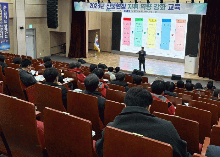 전남도는 29일 동부지역본부 이순신 강당에서 22개 시군 산림부서장과 담당 팀장 등 60여 명을 대상으로 산림청 주관 ‘2026년 산불현장 지휘 역량강화 교육’을 했다.