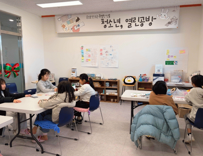 ‘열린공방’은 놀면서 만들고, 편하게 머무는 공간을 콘셉트로 운영되며, 청소년들은 예약이나 복잡한 절차 없이 수련관을 찾아 준비된 재료를 활용한 다양한 만들기 활동에 참여할 수 있다.
