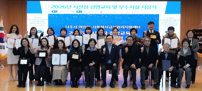 나주시는 지난 29일 동신대학교 대정도서관 동강홀에서 ‘2026년도 시설장 집합교육 및 우수 급식소 시상식’을 개최했다고 30일 밝혔다.