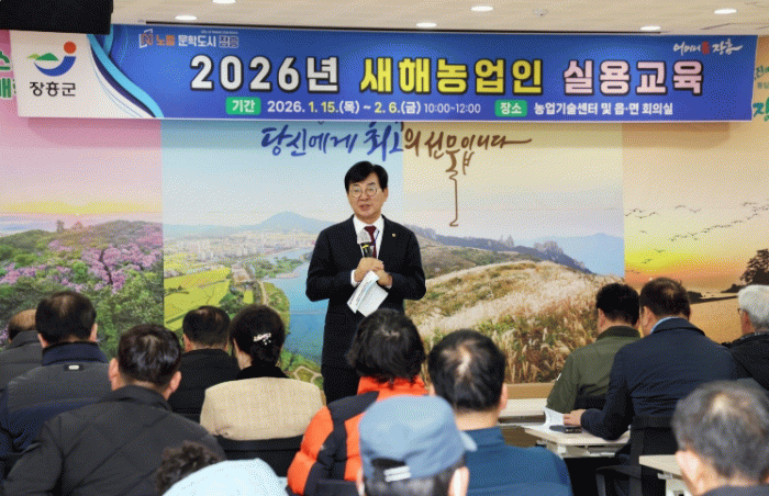 김성 장흥군수는 “이번 새해농업인 실용교육이 AI를 활용한 기후변화 대응 벼 재배기술 등 미래 농업을 대비한 핵심 영농기술을 농업인들이 이해하고 현장에 적용하는 계기가 되길 바란다”며 “앞으로도 AI와 디지털 기술을 접목한 실용 중심 교육을 지속적으로 확대해 기후변화에 선제적으로 대응할 수 있는 지속 가능한 농업 기반을 구축해 나가겠다”고 말했다.