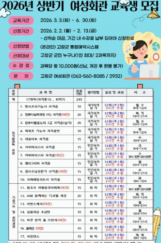 자세한 사항은 고창군 여성회관로 문의하면 된다.