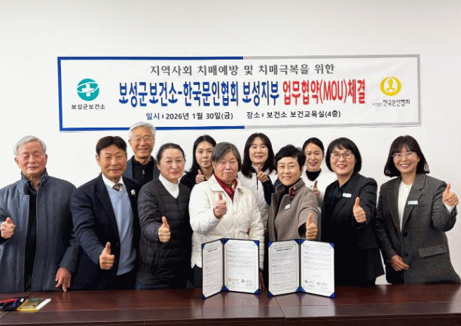 한편, 보성군은 이번 협약을 계기로 문화 기반 치매 예방 및 인식 개선 사업을 확대하고, 치매 친화적 지역사회 조성을 위한 다양한 사업을 지속적으로 추진해 나갈 방침이다.