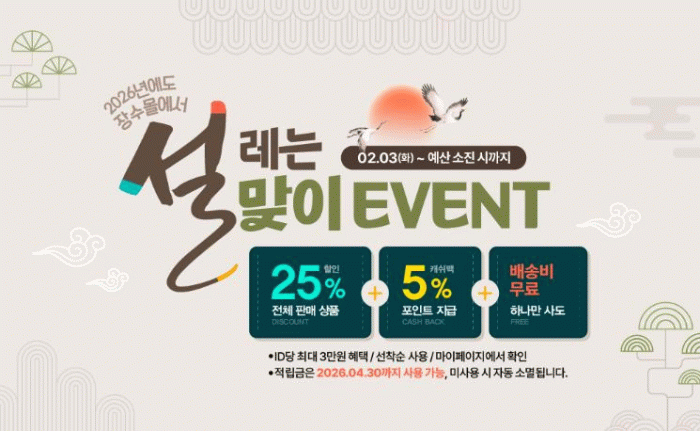 행사 기간 동안 장수몰 전 회원에게 전품목 25% 할인 쿠폰이 제공되며 구매 금액의 5%를 포인트로 적립해주는 혜택도 함께 운영된다.