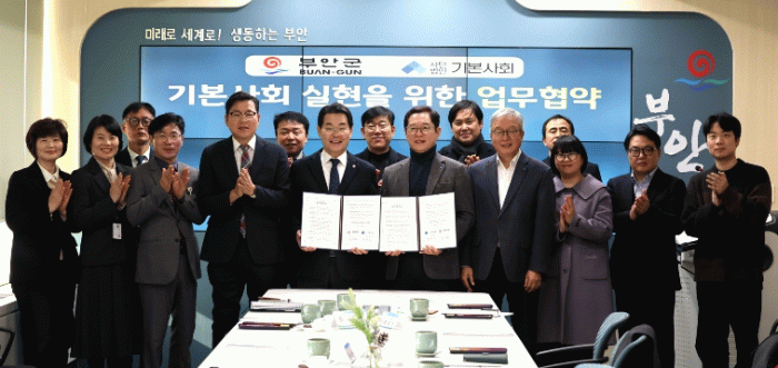 이번 협약은 인구감소와 지역소멸 위기에 대응해 군민의 보편적 삶을 보장하는 ‘부안형 기본사회 모델’을 체계적으로 추진하기 위한 것으로, 양 기관은 정책 연구와 사업 기획, 실행 단계까지 상호 협력하기로 했다.