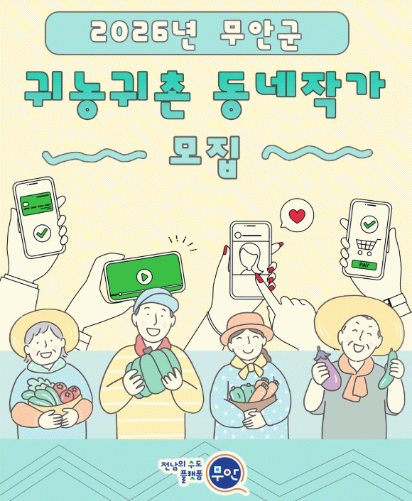 한승헌 인구정책과장은 “동네작가 사업은 주민이 직접 지역의 삶을 전달하는 신뢰도 높은 홍보 방식”이라며 “귀농·귀촌 정책과 무안의 매력을 자연스럽게 알릴 수 있는 계기가 될 것으로 기대한다”고 말했다.