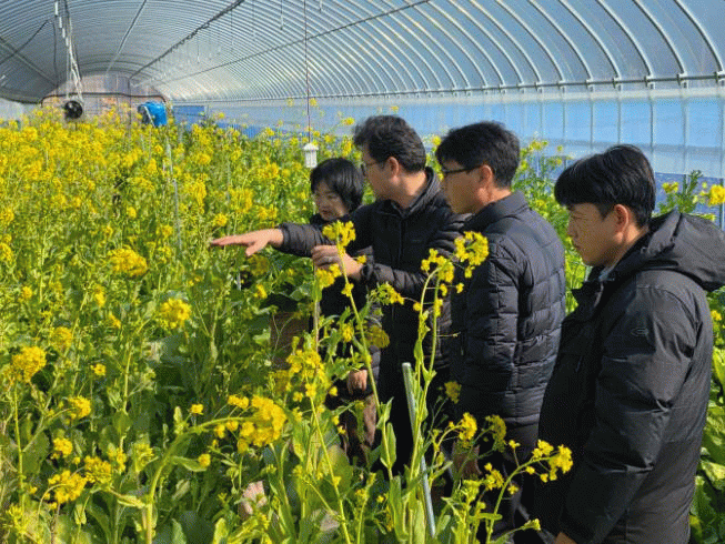 입춘이 지나면서 낮에는 온기가 감돌지만 야간에는 영하의 기온이 이어지는 날씨임을 감안해 비닐온실을 설치하고 전국을 탐색해 선발 수집한 유채 품종 종자를 심어 6개월간의 관리기간을 거쳐 개화가 진행되고 있다.