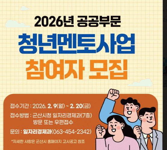 2026년 공공부문 청년멘토사업 관련 기타 자세한 사항은 일자리경제과 청년일자리계로 문의하면 된다.