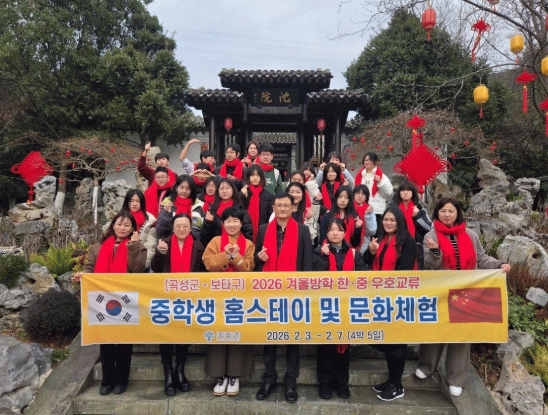 한편, 곡성군은 2007년부터 중학생 국제교류 홈스테이 사업을 지속적으로 추진해 오고 있다. 이를 통해 한·중 양국 청소년들이 상호 교류하며 문화적 차이를 이해하고 공감대를 형성하는 등 세계적인 리더로 성장해 나갈 것으로 기대한다. 앞으로도 군은 다양한 국제교류 프로그램을 통해 청소년들의 국제적 역량 강화를 위한 지원에 적극적으로 나설 계획이다.
