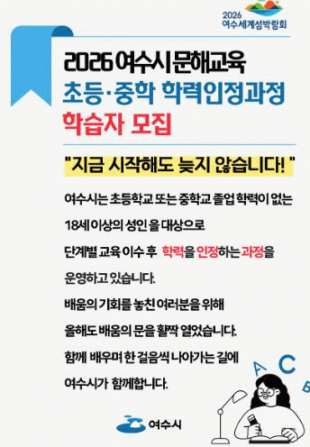 자세한 사항은 여수시 평생교육과로 문의하면 된다.