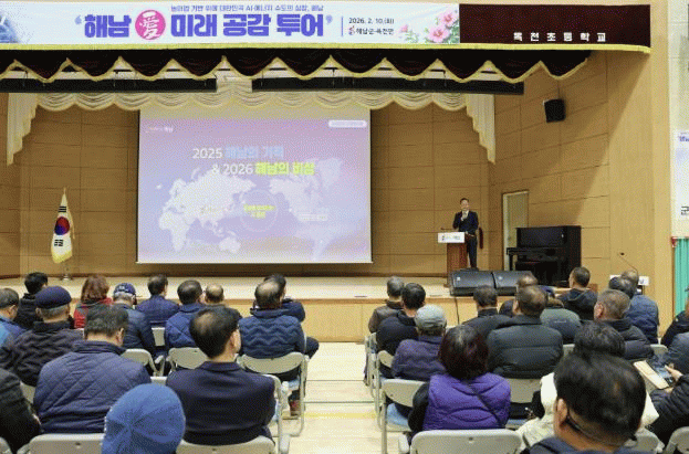 한편 해남군‘해남愛 미래 공감 투어’는 2월 10일 옥천면을 시작으로, 11일 송지면, 12일 마산면, 25일 황산면, 26일 삼산면, 3월 4일 북평·북일면, 5일 화원면, 10일 계곡면, 20일 산이면, 24일 화산면, 25일 해남읍·문내면, 26일 현산면 순으로 개최된다.