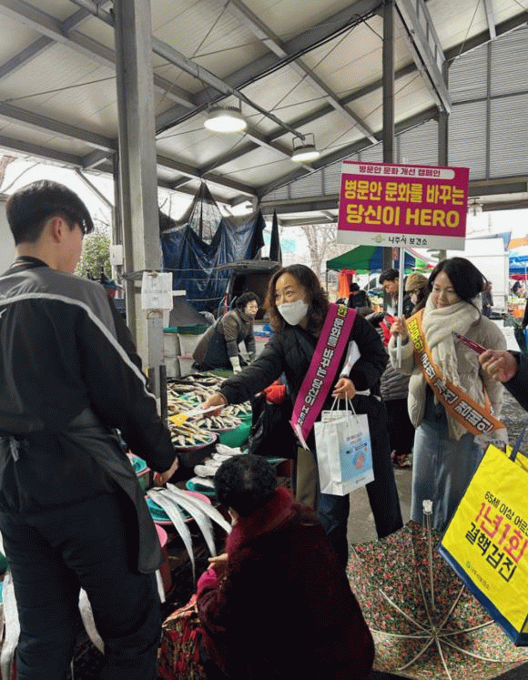 지난 10일 영산포풍물시장에서는 시민을 대상으로 ‘병문안 3대 원칙’인 확인하기, 자제하기, 지켜주기를 중심으로 병문안 수칙을 집중 안내했다.