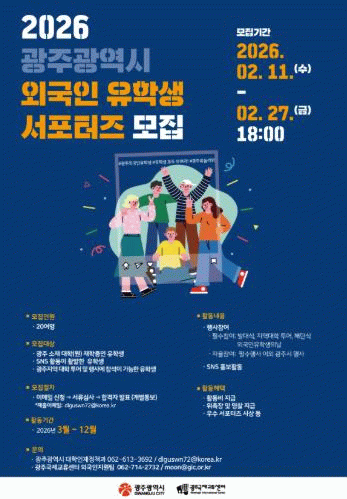 ‘유학생 서포터즈’는 사회관계망서비스(SNS) 등을 통해 광주 유학생활·관광정보를 알리고, 광주시의 다양한 행사에 직접 참여하는 등 민간외교관 역할을 맡게 된다.