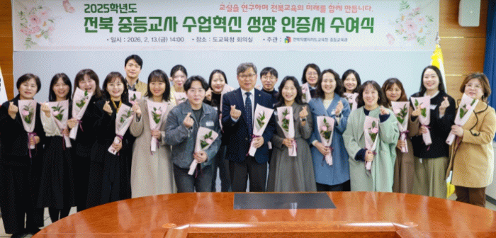 유정기 교육감 권한대행은 “연구하는 교실과 나누는 수업 문화가 학교를 변화시키고, 학교의 변화가 곧 전북교육을 바꾸는 힘”이라며 “수업에 진심인 교사들이 중심이 되는 수업혁신 정책을 더욱 확대해 나가겠다”고 말했다.