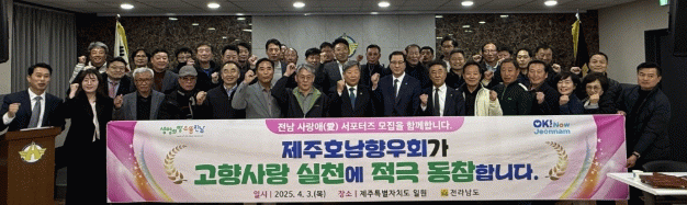 제주호남향우회는 1968년에 만들어져 17만여 향우회원을 대표하고 호남새마을금고를 설립해 소외이웃 돕기와 지역사회 나눔을 실천하는 데 힘쓰고 있다.