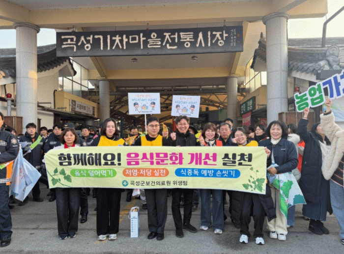 이번 캠페인은 곡성 기차마을 전통시장에서 진행됐으며, 군은 음식문화 개선을 위한 ‘5대 수칙’을 중심으로 적극적인 홍보 활동을 전개했다.
