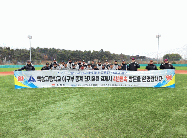 지난 1월 7일부터 29일까지 23일간 백송고등학교 야구부(경기도 고양소재)는 2023년부터 4년간 김제시를 찾아 구슬땀을 흘렸다.