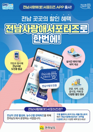 앱은 구글 플레이스토어나 애플 앱스토어에서 ‘전남 사랑애 서포터즈’를 검색해 내려받을 수 있다.