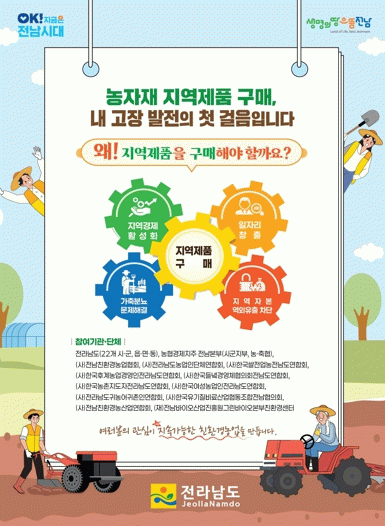 캠페인은 전남에 주소를 둔 업체가 직접 생산한 친환경농자재 구매를 확대해 지역 내 생산·소비 선순환 구조를 구축하고, 일자리 창출, 지역 자본의 역외 유출 방지 등을 통해 지역경제를 활성화하기 위해 추진한다.