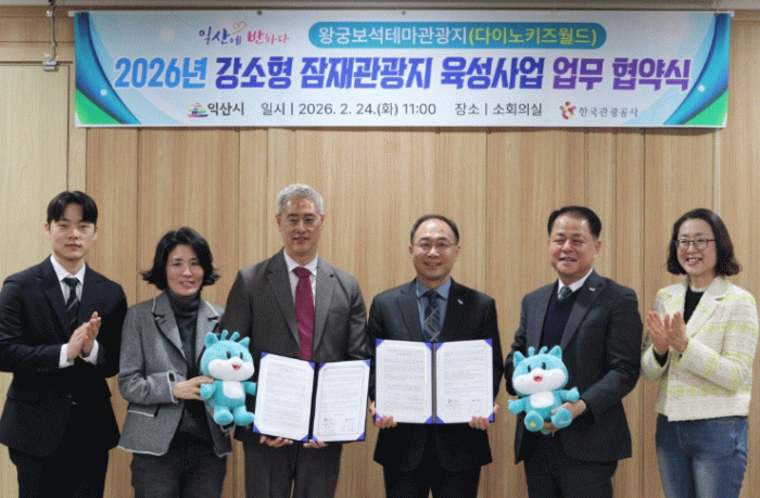 익산시는 24일 시청 소회의실에서 한국관광공사 전북지사와 '2026 강소형 잠재관광지 활성화를 위한 업무협약'을 체결했다.