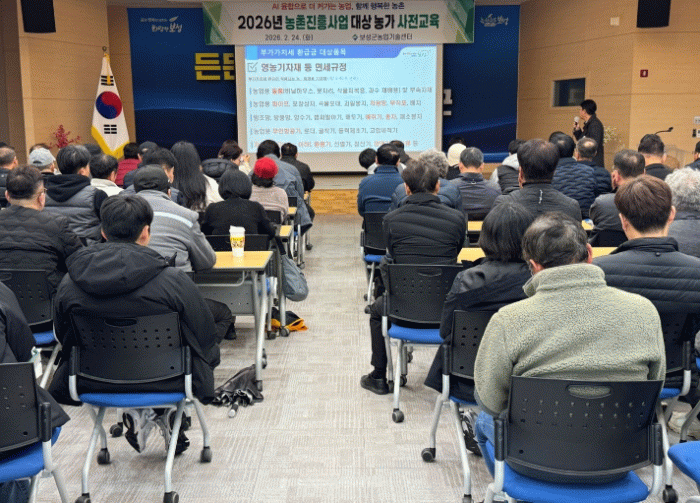 이번 사전 교육에는 읍면 농민상담소장을 비롯해 2026년 농촌진흥사업에 선정된 대표 농가 61명이 참석했다.