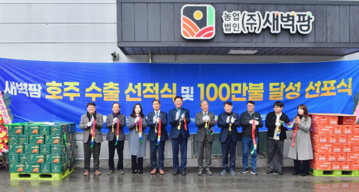 군은 24일 장성 소재 농업회사법인 ㈜새벽팜이 본사에서 호주 수출 선적식을 열었다고 전했다.
