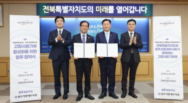 도는 26일 도청에서 광주지방세무사회와 업무협약을 체결하고, 세무 상담 현장과 연계한 세액공제 안내와 제도 홍보를 추진한다고 밝혔다.