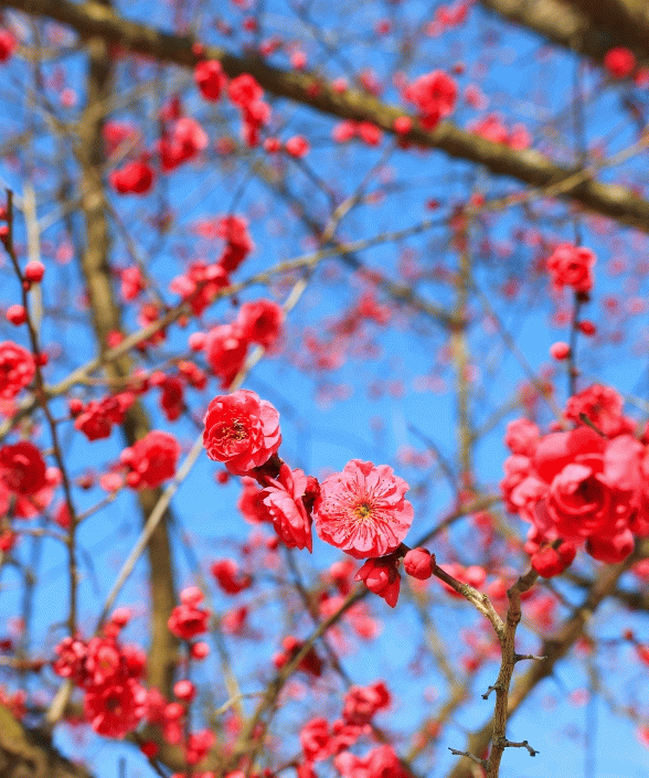 홍매화는 매년 2월 말부터 3월 초까지 절정을 이루며, 섬진강을 배경으로 공원 산책로와 어우러져 장관을 연출한다.