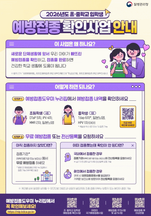 이 사업은 보건소와 학교가 협력해 매년 신입생들의 필수 예방접종 기록을 확인하고 미접종 학생과 학부모에게 접종을 적극적으로 독려해 감염병 확산을 사전에 차단하는 것을 목표로 한다.