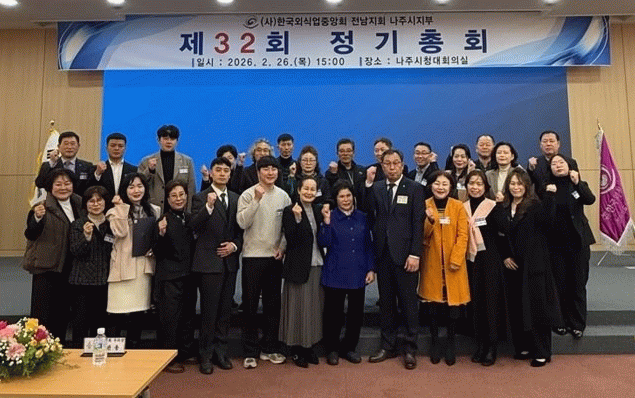 총회에 참석한 김관용 나주시의회 부의장은 “외식업은 지역의 얼굴이자 문화이며 관광과 경제를 연결하는 핵심 산업”이라며 “외식업이 안전하게 성장할 수 있도록 소상공인 지원 확대와 지역대표 음식점 육성 등 실질적인 도움이 되는 정책을 지속적으로 추진해 나가겠다”고 밝혔다.