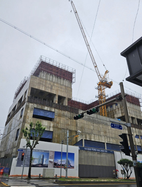 이 현장은 2023년 8월 공사가 멈춘 이후 도심 한복판에 타워크레인이 그대로 방치돼 왔다.
