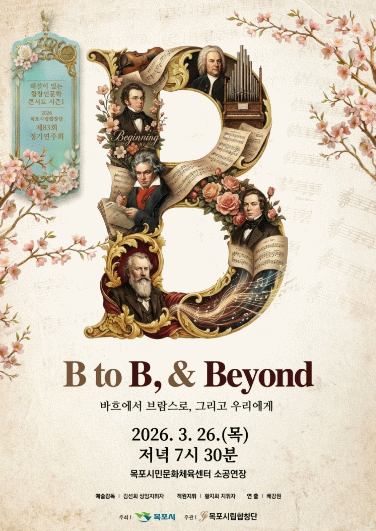 이번 공연은 서양 음악사를 빛낸 거장들의 이름 앞 글자 ‘B’를 테마로, 바로크의 요한 제바스티안 바흐부터 고전주의의 루트비히 판 베토벤, 낭만주의의 프란츠 슈베르트와 로베르트 슈만, 요하네스 브람스에 이르기까지 시대를 아우르는 입체적인 음악 여정을 선보인다. 더 나아가 현대 한국 창작 합창으로 확장되는 ‘Beyond’ 무대를 통해 과거와 현재를 잇는 특별한 감동을 전할 예정이다.
