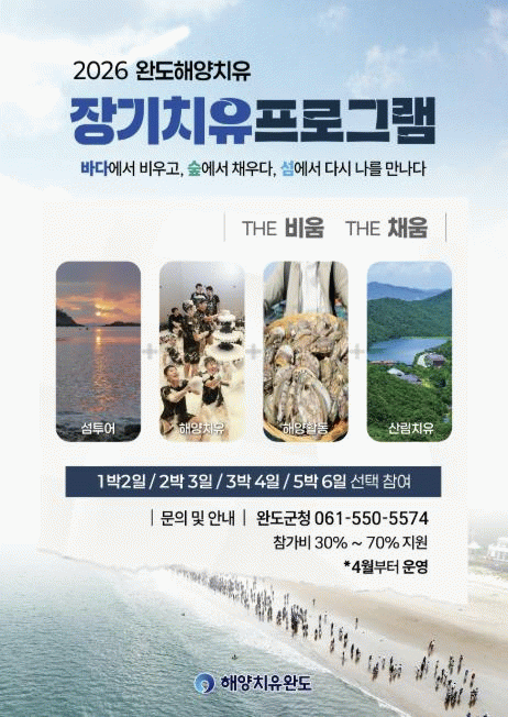 아울러 완도의 다양한 콘텐츠를 결합한 체류형 치유 관광 상품을 지속적으로 발굴·상품화할 계획이다.