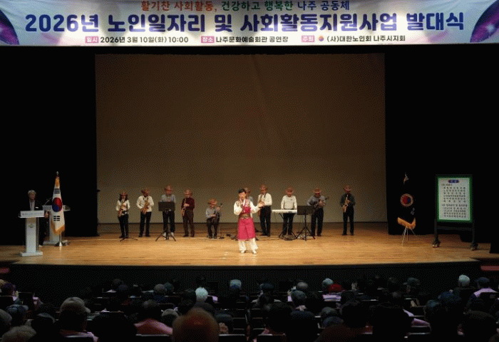 나주시는 지난 10일 나주문화예술회관에서 대한노인회 나주시지회 주관으로 ‘2026년 노인일자리 및 사회활동 지원사업 발대식’을 개최했다고 11일 밝혔다.