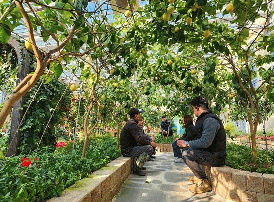특히 열매가 달린 과수 아래에서 휴식을 취할 수 있고 계절에 관계없이 푸른 식물을 관람할 수 있어 겨울철에도 따뜻한 분위기 속에서 자연을 느낄 수 있는 공간으로 평가받고 있다.