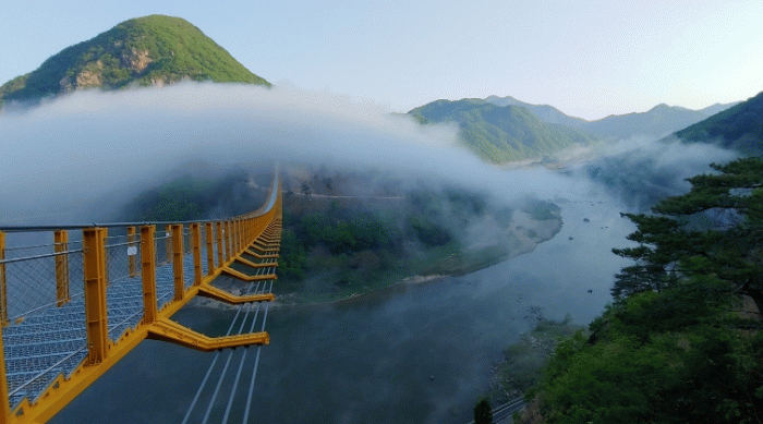 월영산 출렁다리는 높이 45m, 길이 275m에 달하는 무주탑 형태의 보도교로 금강의 수려한 경관을 한눈에 볼 수 있어 매년 수십만 명의 관광객이 찾는 금산의 랜드마크다.