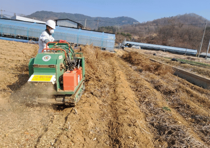영농부산물 파쇄는 봄철 산불을 예방할 뿐 아니라 퇴비를 환원하고 일손 돕기에도 큰 효과를 보이고 있다.