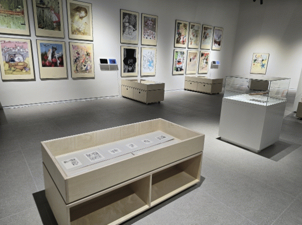 ‘그림책 전시실’에서는 현재 ’이상한 나라의 앨리스‘ 전(展)이 열리고 있다. 전시된 작품들은 고전 동화의 세계관을 감각적인 기법으로 재해석해 흥미를 끈다. 전시장 내에서는 ’포토 존‘, ’앨리스 우표 놀이 북‘, ’판화엽서 컬러링‘ 등을 통해 다양한 체험도 즐길 수 있다.