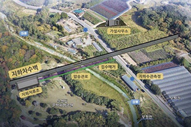보길도 지하수 저류 댐은 지난 2023년도에 설치됐으며 지표면 아래에 차수 벽을 설치하여 지하 수위를 상승시킴으로써 가뭄에도 지하수를 확보할 수 있는 시설이다.
