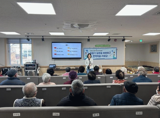이번 교육은 호흡기 질환의 원인과 증상에 대한 이해를 돕고, 올바른 손 씻기와 마스크 착용법, 면역력 강화를 위한 색생활 관리 등 일상에서 실천할 수 있는 감염병 예방 수칙을 중심으로 진행됐다.