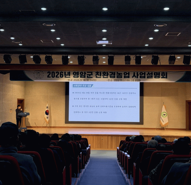 우승희 영암군수는 “사업 지침에 대한 정확한 이해와 안전성 관리 준수가 친환경농업의 기본”이라며 “앞으로도 농가가 변화되는 정책에 능동적으로 대응할 수 있도록 현장 중심 지원을 강화하겠다”고 말했다.