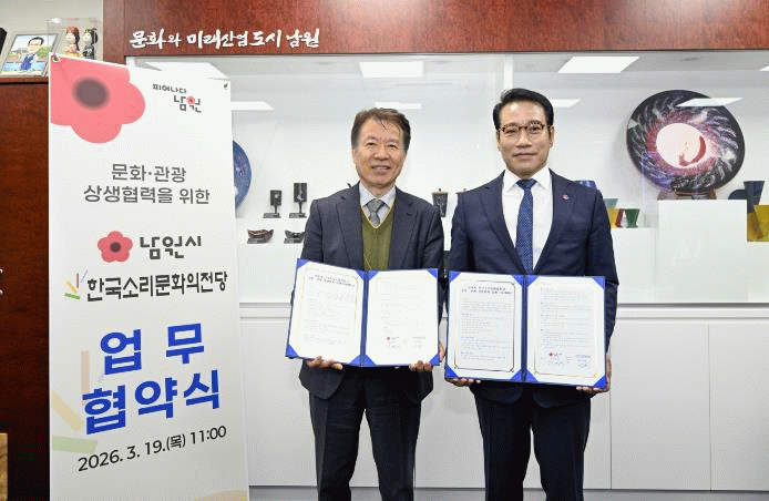 이번 협약은 남원시가 보유한 전통문화와 관광자원, 한국소리문화의전당의 공연예술 기획·운영 역량을 결합해 문화예술 협력의 폭을 넓히고, 이를 관광 활성화로 연결하기 위해 마련됐다.