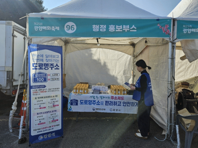 광양시 관계자는 “매화축제를 찾은 많은 분들게 도로명 주소의 편리함을 알릴 뜻깊은 기회였다”며 “앞으로도 시민의 눈높이에 맞는 다양한 홍보 활동을 통해 도로명 주소가 생활 속에 완전히 정착될 수 있도록 최선을 다하겠다”고 밝혔다.