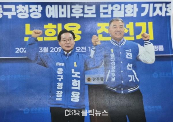 양측은 이날 광주광역시의회 4층 브리핑룸에서 공동 기자회견을 열고 "동구의 재도약과 새로운 10년을 위해 후보 단일화에 합의했다"고 밝혔다.