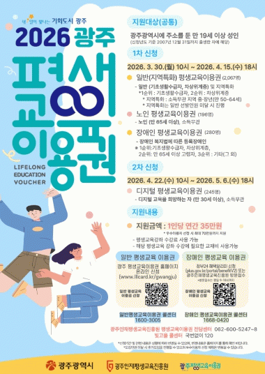 김기숙 교육청년국장은 “평생교육이용권은 경제적 여건으로 배움의 기회를 얻기 어려운 시민들에게 실질적인 학습 기회를 제공하는 제도”라며 “특히 올해는 국가장학금 중복 수혜 제한이 폐지된 만큼 더 많은 시민들이 평생학습에 참여할 수 있기를 기대한다”고 말했다.