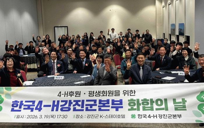 윤윤근 한국4-H강진군본부 회장은 “선·후배와 평생회원, 후원회원 뿐만 아니라 학생·청년4-H와 함께 모여 4-H의 가치를 되새기고 회원 간 화합을 다지는 뜻깊은 시간이 됐다”며 “앞으로도 지역사회와 미래세대 육성을 위해 다양한 활동을 이어가겠다”고 밝혔다.