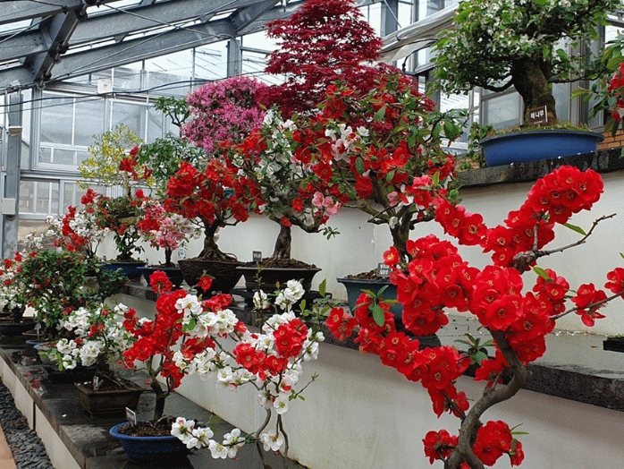 전시 기간 동안 방문객들은 명자나무의 다채로운 꽃과 함께 주목나무, 소나무 등 다양한 분재 작품도 함께 감상할 수 있다.