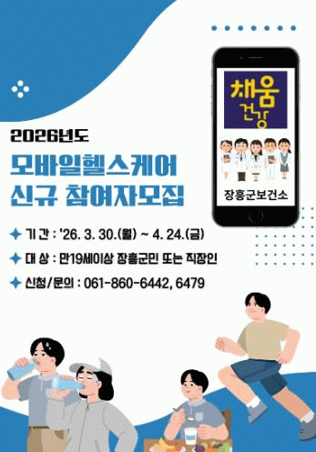 참여를 희망하는 주민은 장흥군보건소 건강증진통합상담실을 방문하거나 전화로 신청하면 된다.