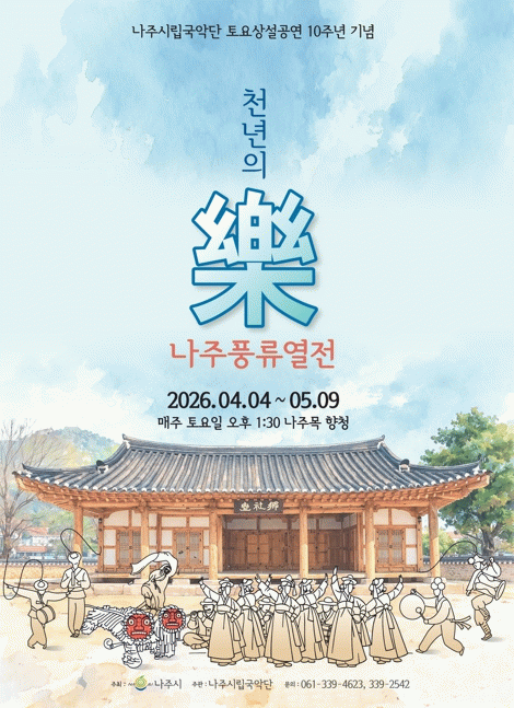나주시립국악단 윤종호 예술감독은 “이번 공연은 전통국악에 현대적 감각을 함께 담아 누구나 편안하게 즐길 수 있도록 구성했다”며 국악의 멋과 흥을 가까이에서 느끼는 특별한 시간이 되길 바란다”고 전했다.